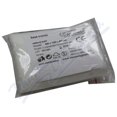 Šátek trojcípý z netkaného textilu, jednotlivě zabalený a proto okamžitě použitelný v předlékařské pomoci i ambulantní péči, při poranění a fixaci především končetin, hlavy apod.Použití