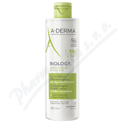 A-DERMA BIOLOGY Dermatologická micelární voda jemně čistí pleť, odstraňuje make-up a nečistoty pleti. Nevysušuje pleť. Bezoplachová péče pro křehkou pleť. Bez parfemace. 100 % složek přírodního původu.Použití