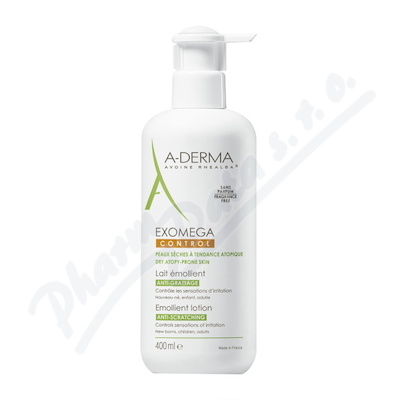 A-DERMA Exomega CONTROL Emolienční mléko 400ml. Na suchou kůži se sklonem k atopii. Bez parfemace. pro novorozence, děti, dospělé.Použití