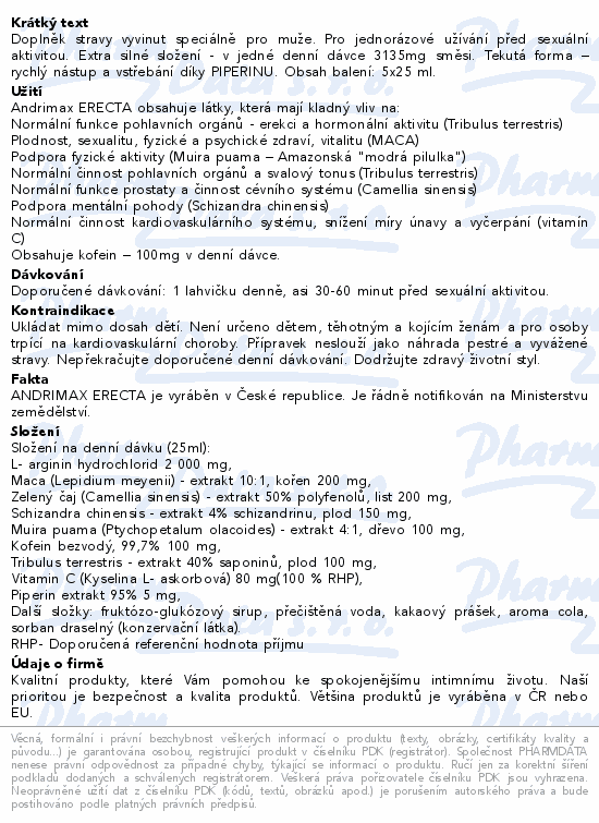 Doplněk stravy vyvinut speciálně pro muže. Pro jednorázové užívání před sexuální aktivitou. Extra silné složení - v jedné denní dávce 3135mg směsi. Tekutá forma – rychlý nástup a vstřebání díky PIPERINU. Obsah balení: 5x25 ml.Použití