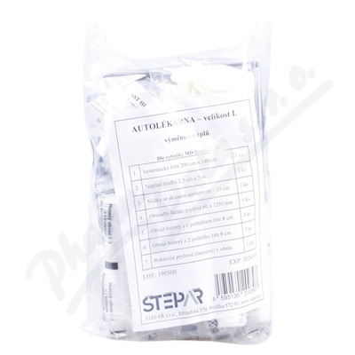 Autolékárnička I., v balení jako náhradní náplň, vybavená všemi potřebami pro první pomoc pro motoristy. Její složení odpovídá vyhlášce č. 153Použití