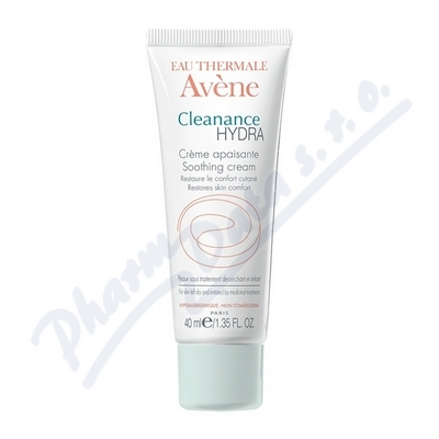 Cleanance HYDRA Zklidňující krém obnovuje komfort kůže. Kůže vysušená a podrážděná medikamentózní léčbou akné. Hypoalergenní - nekomedogenní.Použití