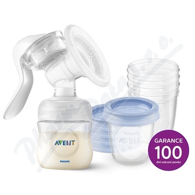 AVENT Manuální odsávačka mateřského mléka se zásobníkem 125ml s dárkem AVENT VIA pohárky 180 ml 5 ks.Použití