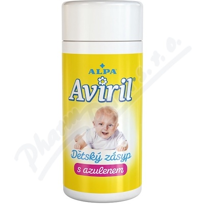 AVIRIL dětský zásyp s azulenem účinně chrání dětskou pokožku, má mírný dezinfekční účinek, obsahuje azulen. Baleno v sypací dóze.Použití