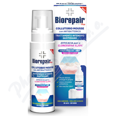 Ústní voda ve formě pěny s antibakteriálním účinkem. Inovativní pěna Biorepair Plus, s jemnou a hebkou texturou, šetrně obklopuje dásně a pomáhá bránit tvorbě bakteriálního plaku a chránit ústní sliznici před zánětem.Použití