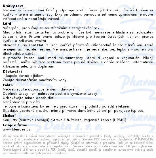 Nehemové železo z kari lístků podporuje tvorbu červených krvinek, přispívá k přenosu kyslíku v těle a snižuje únavu. Díky přírodnímu původu a šetrnému zpracování je dobře vstřebatelné a nezatěžuje trávení.Použití