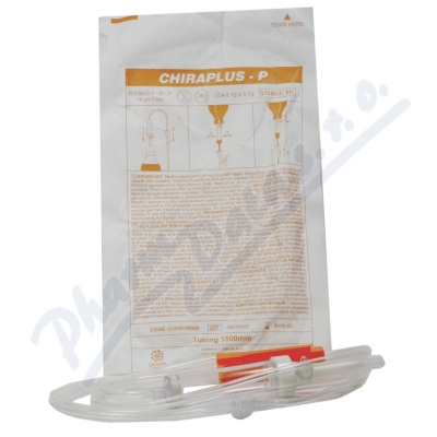 Chiraplus P infúzní souprava, slouží k podávání infúzních roztoků nebo injekčních roztoků z lahví nebo plastových vaků působením gravitrace do žíly pacienta.Použití