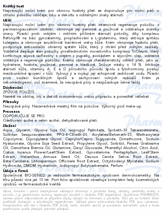 Napravující noční krém pro obnovu hustoty pleti se doporučuje pro noční péči o citlivou pokožku obličeje, krku a dekoltu s viditelnými znaky stárnutí.Použití