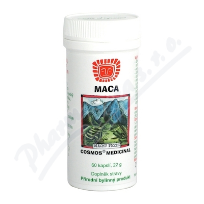 Maca. Doplněk stravy. Tradiční bylinný produkt. 60 kapslí, 22 g. Udržuje fyzické a duševní síly. Plodnost a sexuální aktivita. Při menopauze.Použití