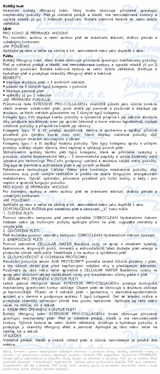 Intenzivní bohatý liftingový krém, který trvale obnovuje přirozené zpevňující mechanismy pokožky. Pleť je viditelně plnější a hladší, má remodelované kontury a vypadá mladší již po 2 měsících používání. Bohatá krémová textura se velmi dobře vstřebává.Použití