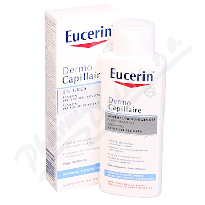 Eucerin DermoCapillaire šampon na vlasy 5% UREA pro suchou pokožku je vhodný pro suchou, svědící pokožku a jako kompl.péče při dermatologické léčbě atopického ekzému a lupénky. Vhodný pro děti od 3 let. Jemné složení bez parfemace minimalizuje podráždění.Použití