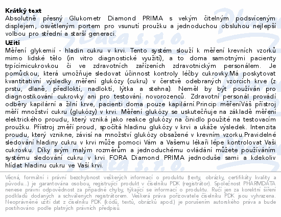 Absolutně přesný Glukometr Diamond PRIMA s vekým čitelným podsvíceným displejem, osvětleným portem pro vsunutí proužku a jednoduchou obsluhou nejlepší volbou pro střední a starší generaci.Použití