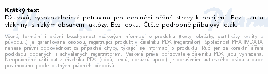 Džusová, vysokokalorická potravina pro doplnění běžné stravy k popíjení. Bez tuku a vlákniny. s nízkým obsahem laktózy. Bez lepku. Čtěte pozorně příbalový leták.Použití