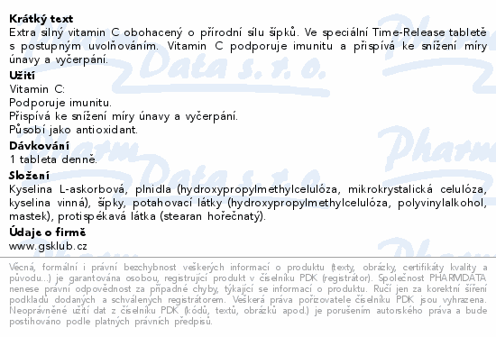 Extra silný vitamin C obohacený o přírodní sílu šípků. Ve speciální Time-Release tabletě s postupným uvolňováním. Vitamin C podporuje imunitu a přispívá ke snížení míry únavy a vyčerpání.Použití