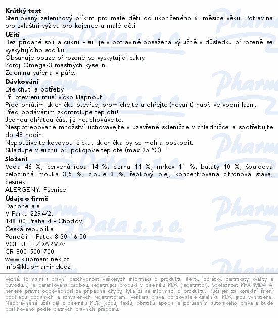 Sterilovaný zeleninový příkrm pro malé děti od ukončeného 6. měsíce věku. Potravina pro zvláštní výživu pro kojence a malé děti.Použití
