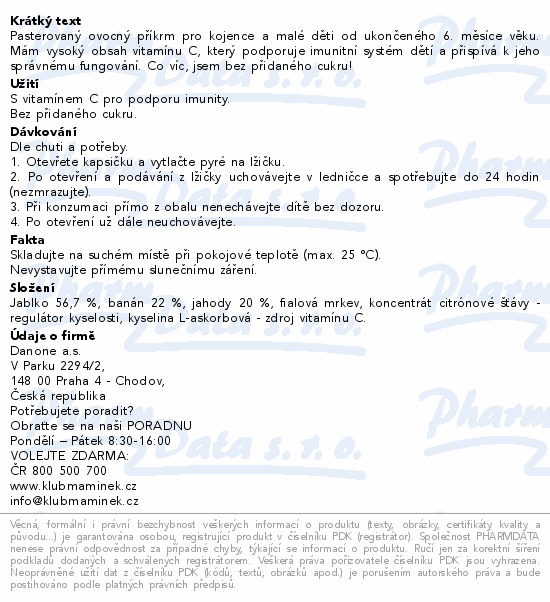 Pasterovaný ovocný příkrm pro kojence a malé děti od ukončeného 6. měsíce věku. Mám vysoký obsah vitamínu C, který podporuje imunitní systém dětí a přispívá k jeho správnému fungování. Co víc, jsem bez přidaného cukru!Použití
