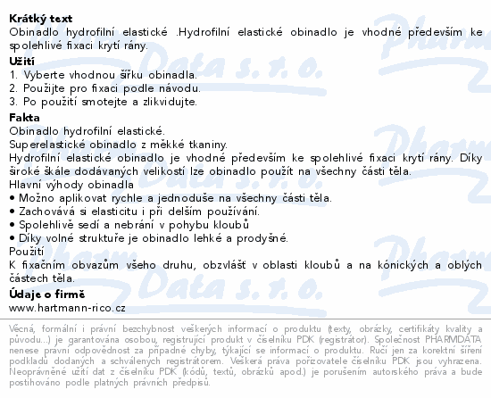 Obinadlo hydrofilní elastické .Hydrofilní elastické obinadlo je vhodné především ke spolehlivé fixaci krytí rány.Použití