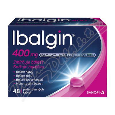 Přípravek Ibalgin 400 obsahuje léčivou látku ibuprofen, která patří do skupiny tzv. nesteroidních protizánětlivých léčiv. Zabraňuje tvorbě tkáňových působků, které jsou zodpovědné za vznik bolesti a zánětu a uvolňují se v místě poškození tkáně. Čtěte pozorně příbalový leták.Použití
