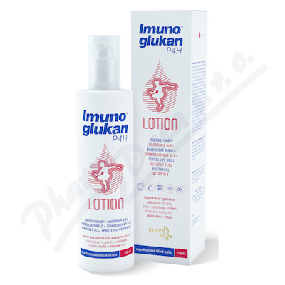 Tělové mléko Imunoglukan P4H lotion je vhodné na regeneraci, ochranu a udržování dobrého stavu kůže. Je vhodné na suchou kůži se sklonem k atopii. Obsahuje Imunoglukan, arganový, mandlový a makadamiový olej, bambucké máslo, panthenol, vitamin E.Použití