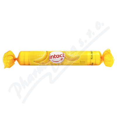 Intact pastilky z hroznového cukru s příchutí banán s vitaminem C. Doplněk stravy, vitamínový přípravek.Použití