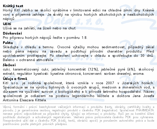 Horký Kitl Jablko se skořicí vyrábíme v limitované edici na chladné zimní dny. Krásně voní a příjemně zahřeje. Je skvělý na výrobu horkých alkoholických a nealkoholických nápojů.Použití