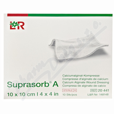 Suprasorb A obvaz z přírodních alginátových vláken. Podporuje hojení ran svou vysokou absorpční kapacitou exsudátu. Při absorpci exsudátu z rány se ionty sodíku vyměňují s ionty vápníku za vzniku gelu, který zachytí bakterie a buněčné nečistoty.Použití