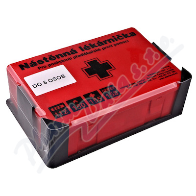 Lékárnička nástěnná plastová do 5-ti osob slouží k poskytnutí předlékařské 1. pomoci. Lékárnička je opatřena držákem na stěnu.Použití