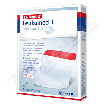 Leukomed T Skin Sensitive je sterilní transparentní silikonové krytí určené pro fixaci a ochranu rány, voděodolné, bez polštářku, šetrné k pokožce. Průhledné krytí spolehlivě fixuje kanyly a brání vstupu bakterií do rány. Propustné pro páry a vlhkost.Použití