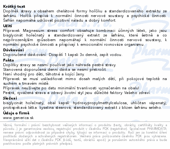 Doplněk stravy s obsahem chelátové formy hořčíku a standardizovaného extraktu ze šafránu. Hořčík přispívá k normální činnosti nervové soustavy a psychické činnosti. Šafrán napomáhá udržovat pozitivní náladu a dobrý komfort.Použití