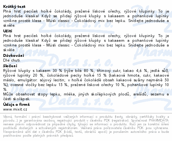 Mixit Müsli classic Čokoládový mix bez lepku 430g