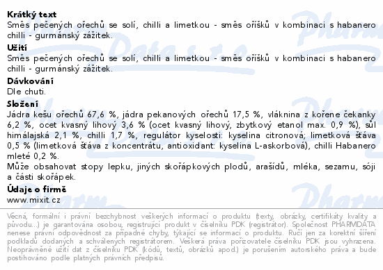 Směs pečených ořechů se solí, chilli a limetkou - směs oříšků v kombinaci s habanero chilli - gurmánský zážitek.Použití