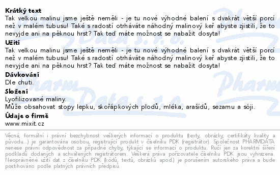Tak velkou malinu jsme ještě neměli - je tu nové výhodné balení s dvakrát větší porcí než v malém tubusu! Také s radostí otrháváte náhodný malinový keř abyste zjistili, že to nevyjde ani na pěknou hrst? Tak teď máte možnost se nabažit dosyta!Použití