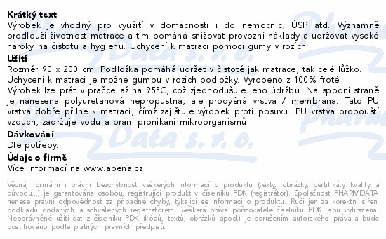 Výrobek je vhodný pro využití v domácnosti i do nemocnic, ÚSP atd. Významně prodlouží životnost matrace a tím pomáhá snižovat provozní náklady a udržovat vysoké nároky na čistotu a hygienu. Uchycení k matraci pomocí gumy v rozích.Použití