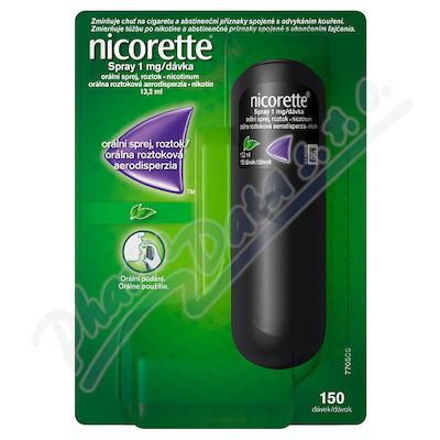 Orální sprej Nicorette pomáhá zbavit se závislosti na kouření. Sprej potlačí touhu po cigaretě již po 30 sekundách, při užití dvou dávek. Navíc je bez obsahu cukru. Sprej má příjemnou příchuť máty. Čtěte pozorně příbalový leták.Použití