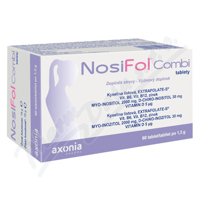 NosiFol Combi je doplněk stravy s obsahem myo-inositolu, d-chiro-inositolu, vitaminů a zinku. Zinek podporuje normální plodnost a reprodukci.Použití