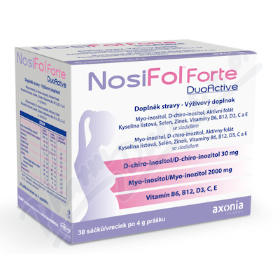 NosiFol Forte DuoActive je doplněk stravy se sladidlem určený pro podporu plodnosti. Obsahuje myo-inositol, d-chiro-inositol a biologicky aktivní folát nejnovější generace.Použití