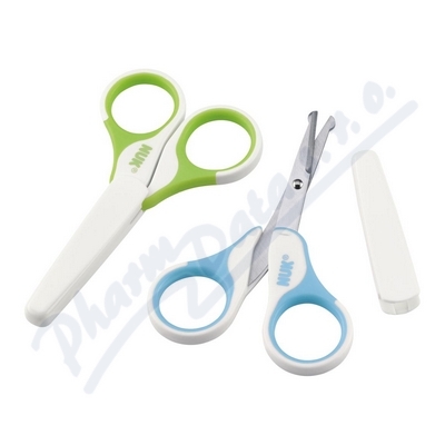 Dětské bezpečnostní nůžky na stříhání dětských nehtů. Zaoblený konec, protiskluzová držátka. S krytem. Nůžky se dodávají v různých barevných variacích.Použití