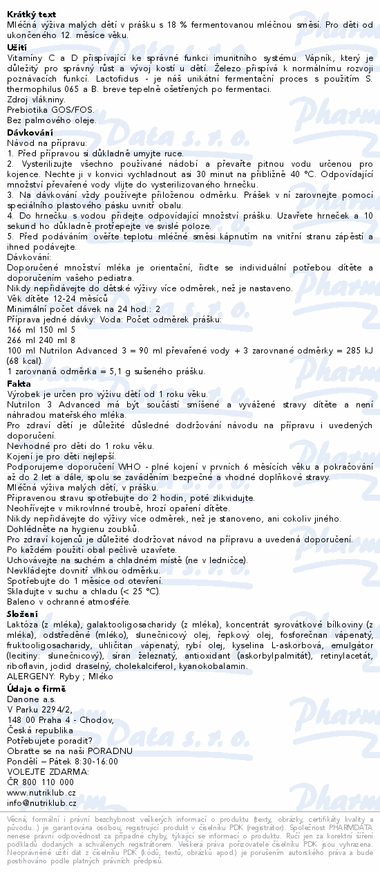 Mléčná výživa malých dětí v prášku s 18 % fermentovanou mléčnou směsí. Pro děti od ukončeného 12. měsíce věku.Použití