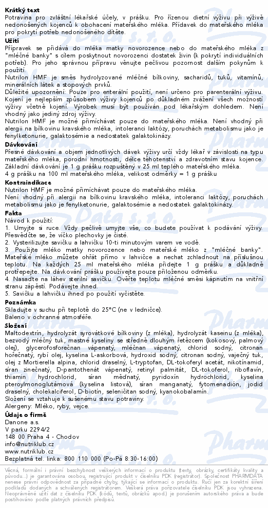 Potravina pro zvláštní lékařské účely, v prášku. Pro řízenou dietní výživu při výživě nedonošených kojenců k obohacení mateřského mléka. Přídavek do mateřského mléka pro pokrytí potřeb nedonošeného dítěte.Použití