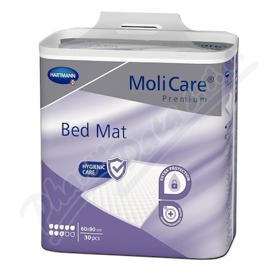 Jednorázové podložky MoliCare Bed Mat jsou tvořeny absorpčním jádrem z několika vrstev celulózy. Jsou opatřeny vnější nepropust. a protiskluzovou fólií. Celá plocha podložky je pokryta netkanou a po obvodu uzavřenou textilií s ražbou proti shrnutí jádra.Použití