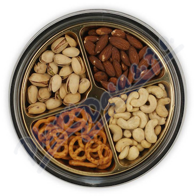 Obsahuje směs ořechů - kešu, mandle, pistácie a preclíky. Výrobek je zabalen v plastové doze, kterou je možné použít opakovaně.Použití