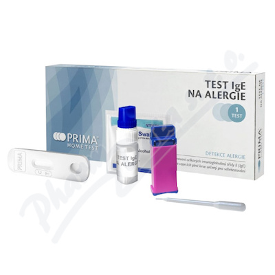Špičkový rychlý test na detekci imunoglobulinů třídy E (IgE) od švýcarské firmy PRIMA Lab SA. Test je určen pro sebetestování. Provádí se z kapky krve. Slouží jako pomůcka k časné identifikaci možné alergické reakce. Hraniční koncentrace je 100 UIPoužití