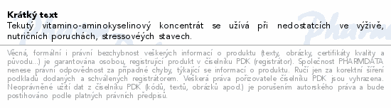 Tekutý vitamino-aminokyselinový koncentrát se užívá při nedostatcích ve výživě, nutričních poruchách, stressovéých stavech.Použití