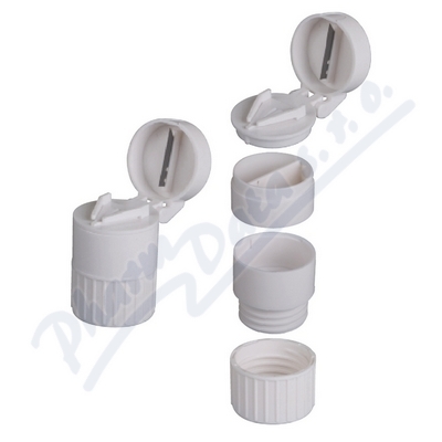 Kapesní zásobník na léky se čtyřmi funkcemi: drtič tablet, půlič tablet, nádobka na rozpuštění tablety a zásobník na léky.Použití