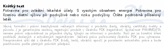 Potravina pro zvláštní lékařské účely. S vysokým obsahem energie. Potravina pro řízenou dietní výživu při podvýživě nebo riziku podvýživy. Čtěte pozorně příbalový leták.Použití
