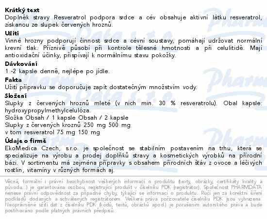 Doplněk stravy Resveratrol podpora srdce a cév obsahuje aktivní látku resveratrol, získanou ze slupek červených hroznů.Použití