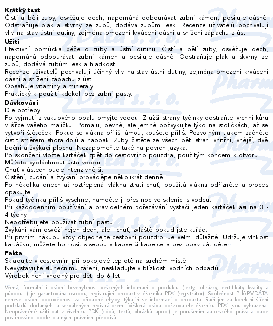 Čistí a bělí zuby, osvěžuje dech, napomáhá odbourávat zubní kámen, posiluje dásně. Odstraňuje plak a skvrny ze zubů, dodává zubům lesk. Recenze uživatelů pochvalují vliv na stav ústní dutiny, zejména omezení krvácení dásní a snížení zápachu z úst.Použití