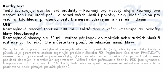 Tento set spojuje dva ikonické produkty – Rozmarýnový vlasový olej a Rozmarýnové vlasové tonikum, které pečují o zdraví vašich vlasů i pokožky hlavy. Ideální volba pro všechny, kdo hledají přirozenou cestu k silnějším, zdravějším a krásnějším vlasům.Použití
